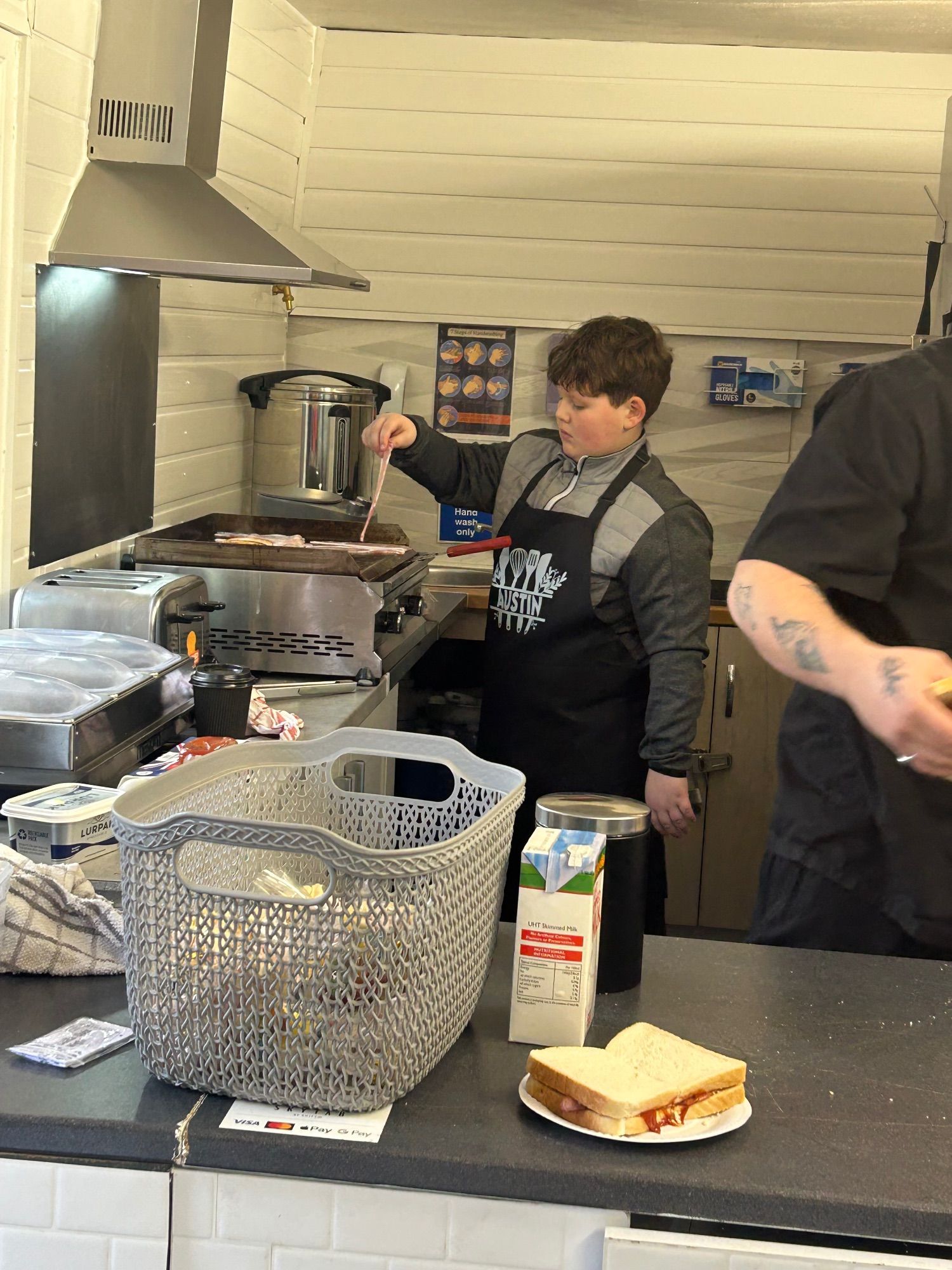 But there’s more to Austin than his can-do attitude and impressive work ethic. His real passion? Cooking! Austin is an absolute star in the kitchen. Not content to simply watch from the sidelines, he took it upon himself to earn his Food Hygiene certificate (quite the achievement for someone his age!). Now, you’ll find him alongside our chef Will in the Colts Café, whipping up breakfast sandwiches that have quickly become the stuff of legend among our regulars.